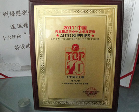 保賜利董事長連運增先生,出生于香港,被業界評為最具明星范兒的儒商,在2010年因“將品牌視為生命,用服務締造完美,帶領‘保賜利’使中國汽車美容養護產業煥發無限生機”而榮膺年度“十大風云人物”。而2011年,保賜利在連運增領導下,再度以行業領頭羊之勢,在大環境疲軟的情況下,譜寫了行業神話,造就著汽車美容養護行業第一品牌而榮獲“2011年十大風云人物”。