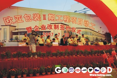 歐亞公司根據自身的發展需要,與招商證券、鵬城會計師事務所,廣東君言律師事務所簽約合作,對歐亞公司進行股份制改造, 我們相信,歐亞包裝公司今后將更高速發展,在國內IPO融資,并與廣大投資者共享公司的快速發展成果。