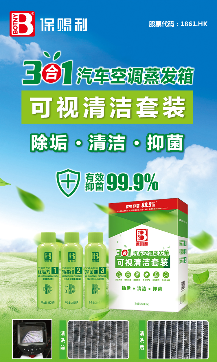 保賜利汽車空調可視清潔套裝,深度去污除異味,有效抑菌99.9%,讓健康看得見!